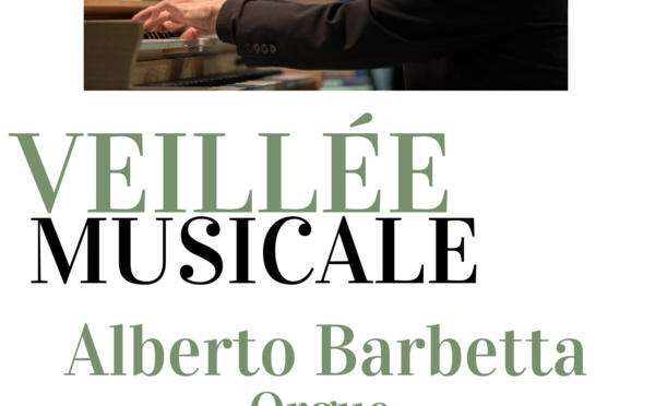 Veillée musicale avec Alberto Barbetta , orgue - Dimanche 19 février 2023 à 17h - 14/02/2023